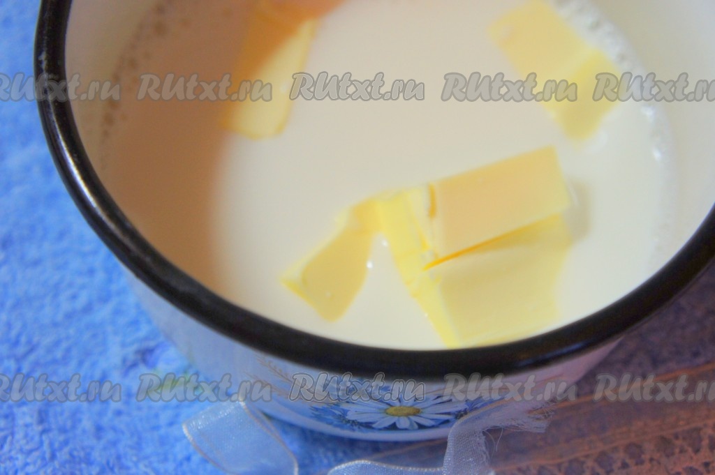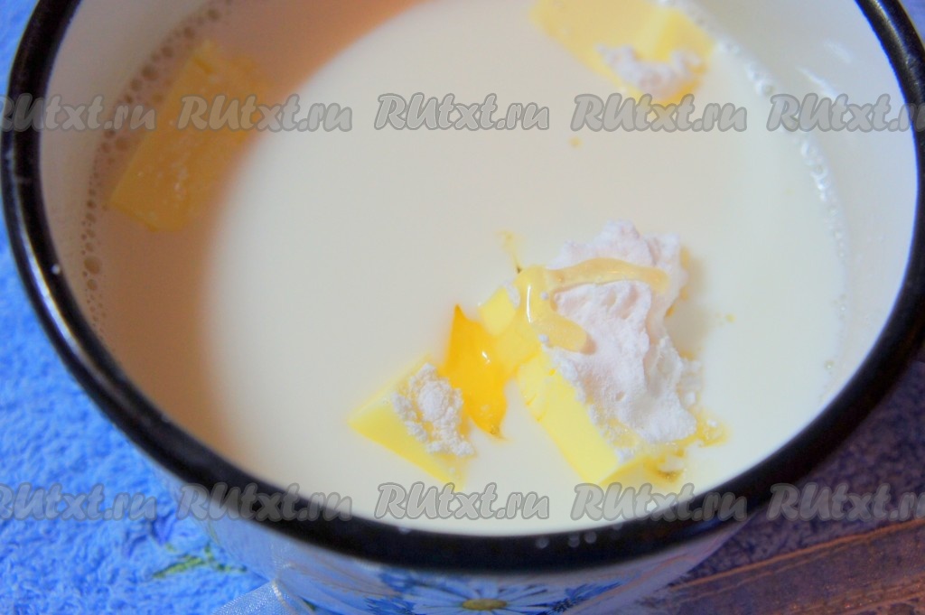 В сотейник добавить молоко, масло.