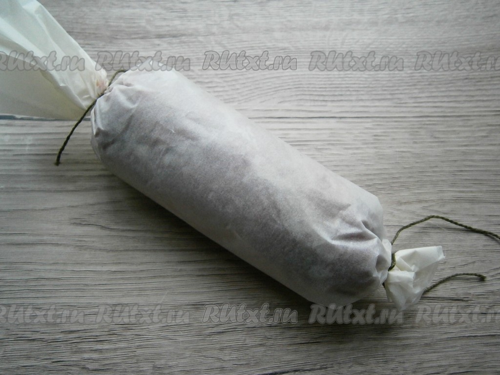 Завернуть рулет в пергамент, края бумаги крепко перевязать.