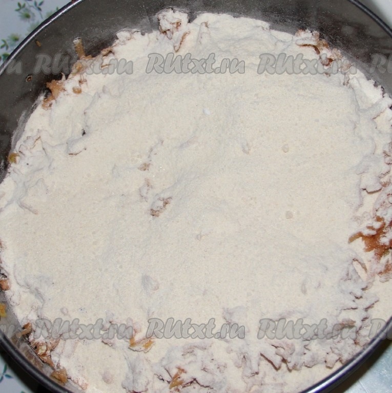 Поверх яблок равномерно распределяем вторую часть сухих ингредиентов.