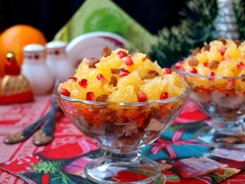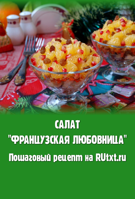 Предлагаю вашему вниманию рецепт вкусного порционного салата "Французская любовница", который сможет украсить ваш праздничный стол. В этом салатике очень хорошо сочетаются филе курицы с изюмом, морковью и апельсинами, а маринованный лук придаёт блюду пикантность. Попробуйте!