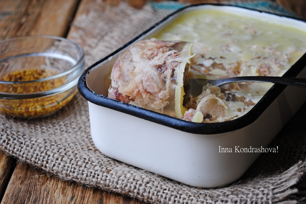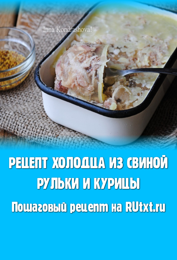 Сытный, вкусный холодец из свиной рульки и курицы, сваренный по этому рецепту, - прекрасное блюдо для будней и праздников, особенно если его подать с хреном или горчицей.