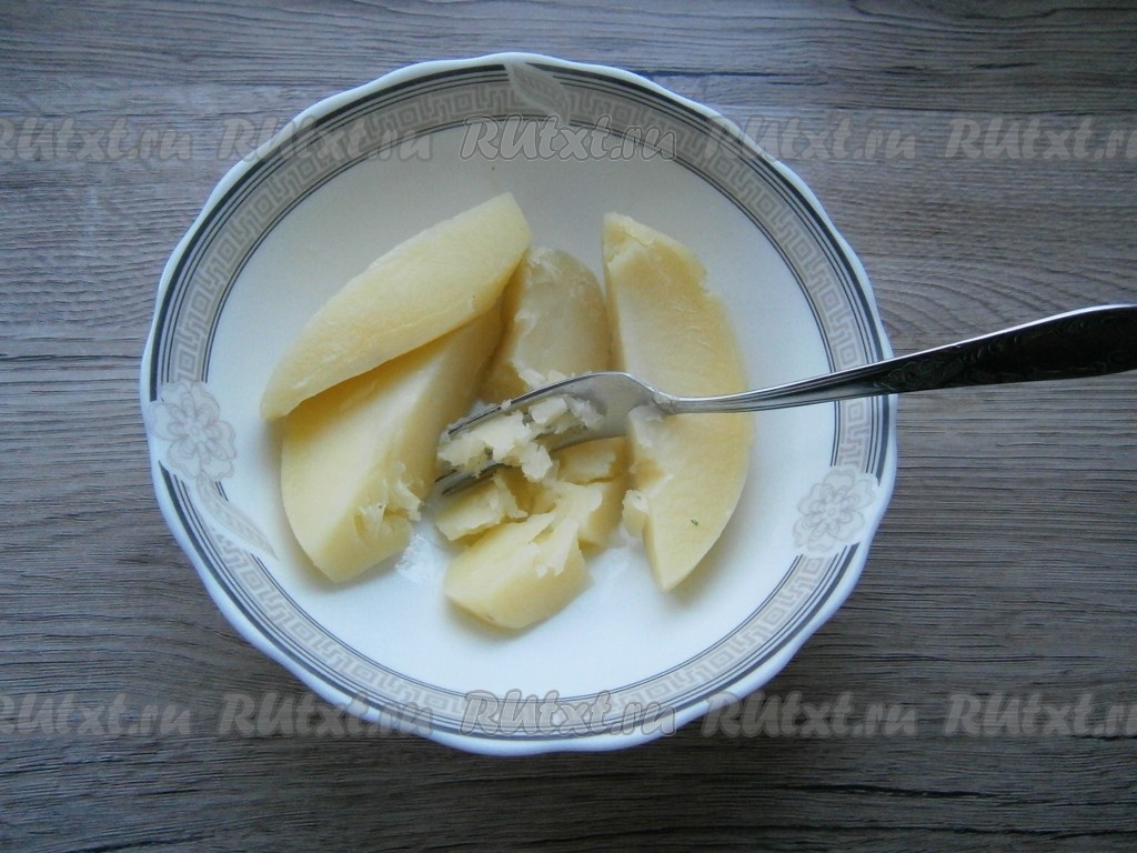 Когда картофель будет готов, вынуть из кастрюли его крупные части.