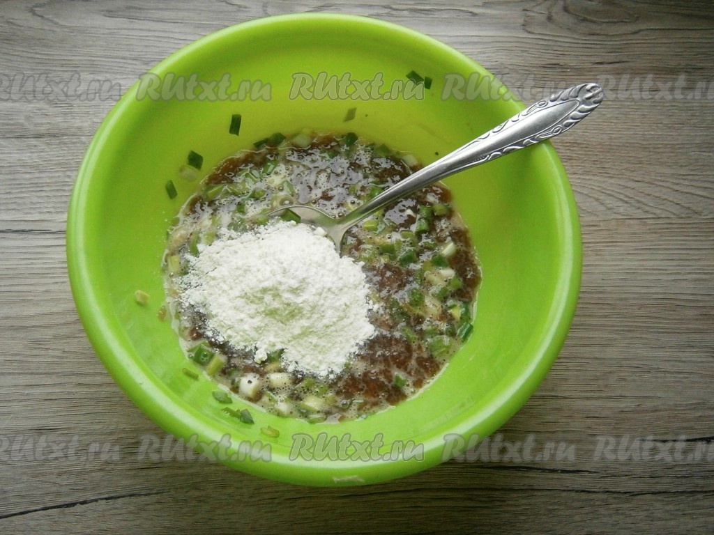 Икру посолить и поперчить, тщательно перемешать. Всыпать муку и еще раз массу хорошенько перемешать.