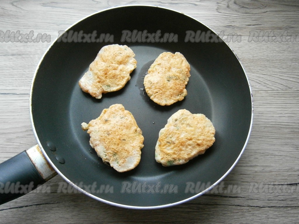 Выкладывать икорную массу ложкой на разогретую с растительным маслом сковороду в виде небольших продолговатых котлеток. Жарить котлеты на среднем огне до румяности с двух сторон.