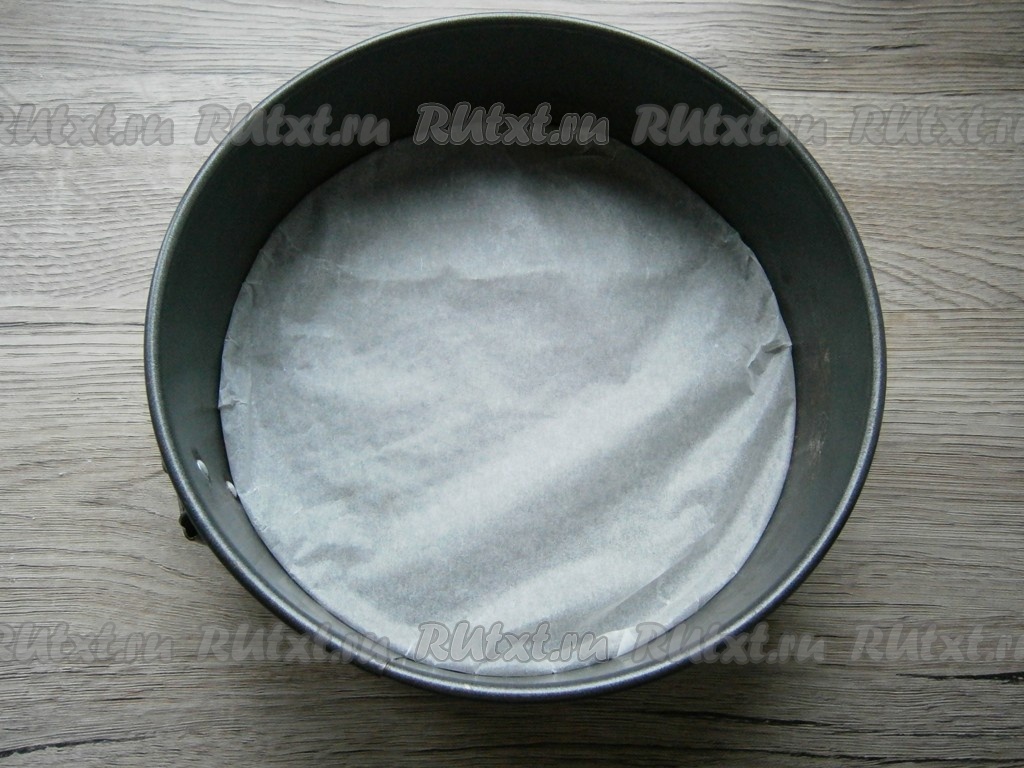 Дно разъемной формы диаметром 18 см застелить пергаментом.