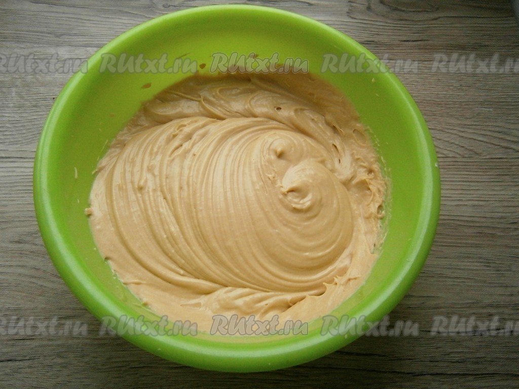 Вылить в форму подготовленное тесто, которое по консистенции должно быть похожим на крем.