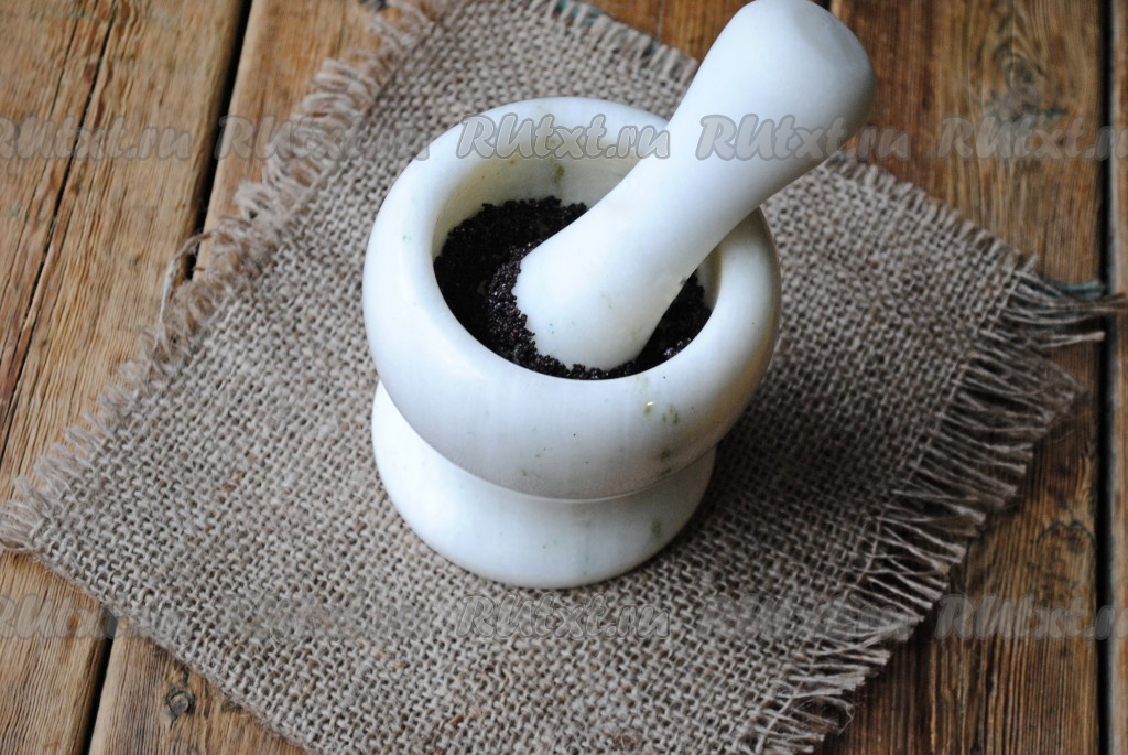 Растолочь мак в ступке, чтобы выделилось белое молочко.