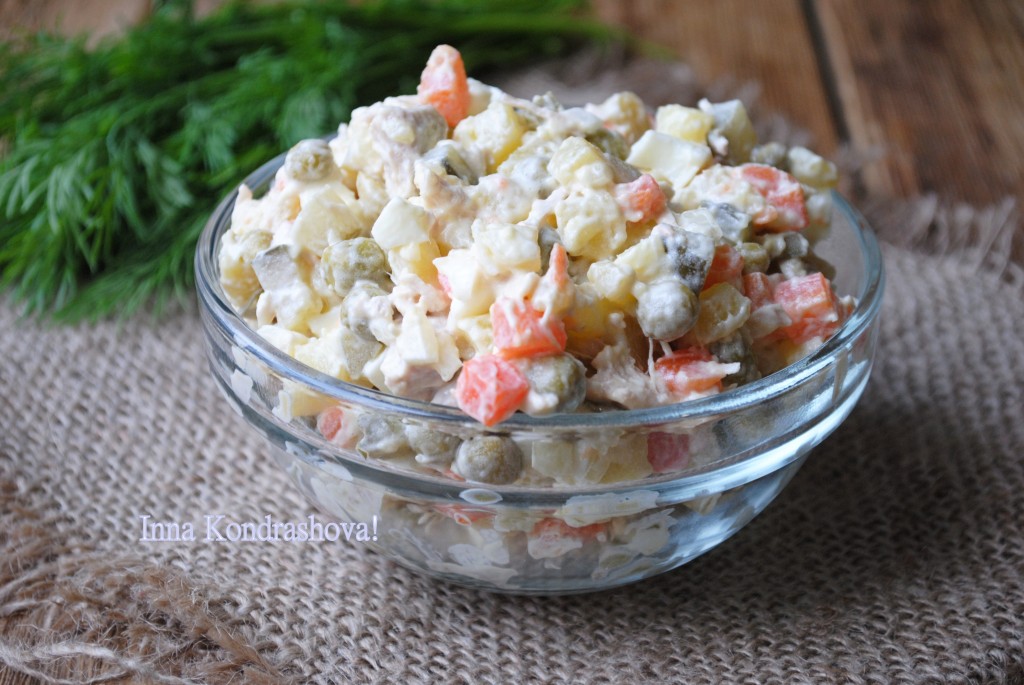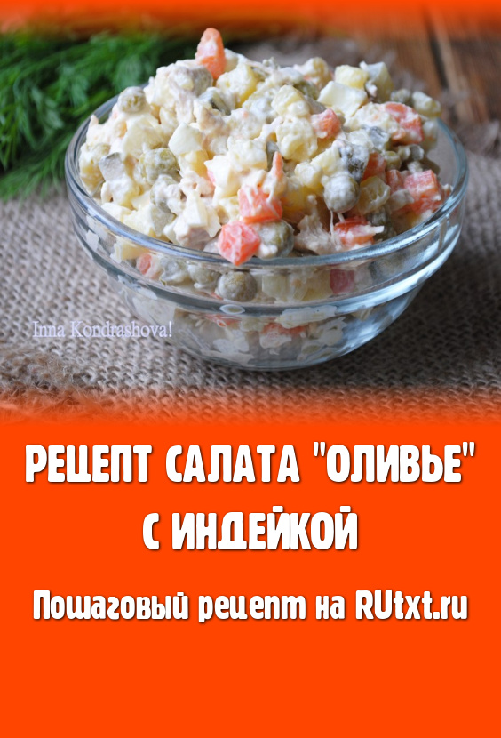 Все мы привыкли, что салат "Оливье" готовят с вареной колбасой. Однако есть множество вариаций этого блюда. Его готовят с ветчиной, мясом, говяжьим или свиным языком и даже с рыбой. Сегодня хочу поделиться рецептом салата "Оливье" с индейкой. Салатик получается очень вкусным и сытным, понравится многим. Попробуйте!
