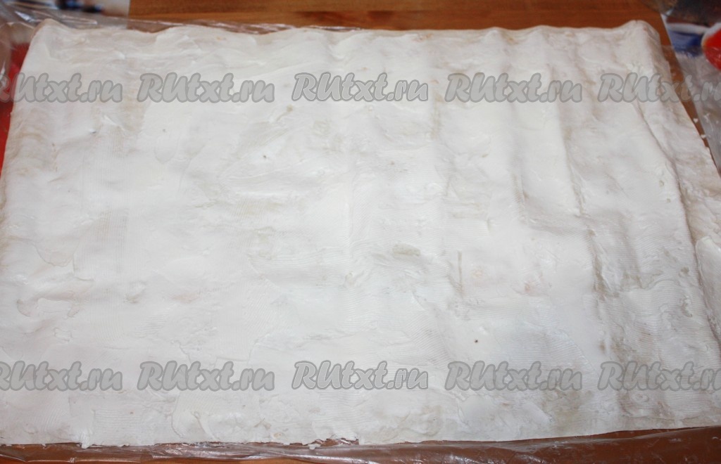 Рулет плотно завернуть в пищевую пленку и убрать на несколько часов холодильник, можно оставить на ночь.