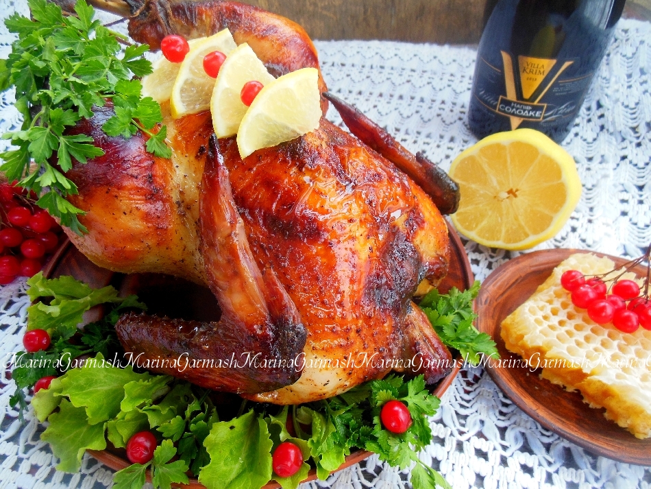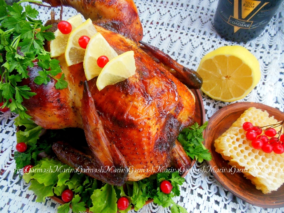 Курица, запеченная с медом и горчицей в духовке, получается невероятно нежной, сочной и ароматной. Такое блюдо разнообразит ваше повседневное меню, да и праздничный стол украсит. Кожица птицы получается тоненькой, аппетитной и румяной. Если мясо будет сильно зарумяниваться в процессе запекания, тогда прикройте курочку фольгой. Наивкуснейшая курица, приготовленная по этому простому рецепту, понравится многим, попробуйте!