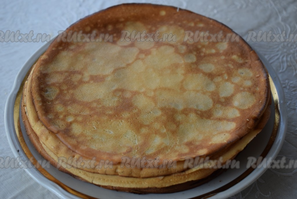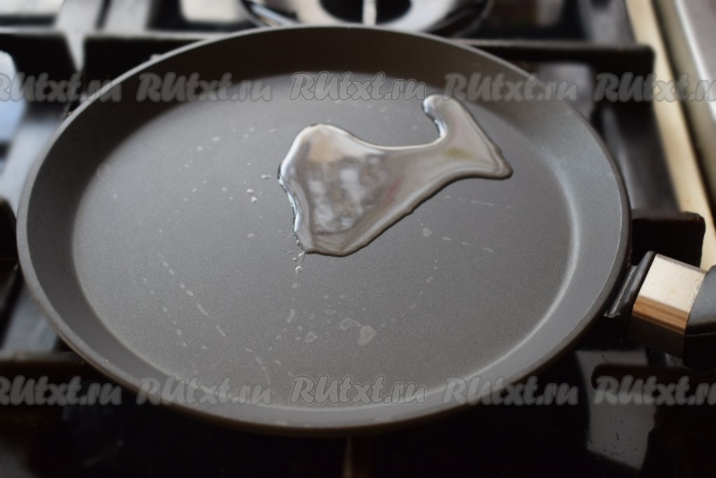 Из готового теста печем блины на хорошо разогретой сковороде, которую перед выпеканием первого блинчика надо смазать растительным маслом.