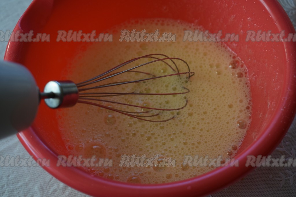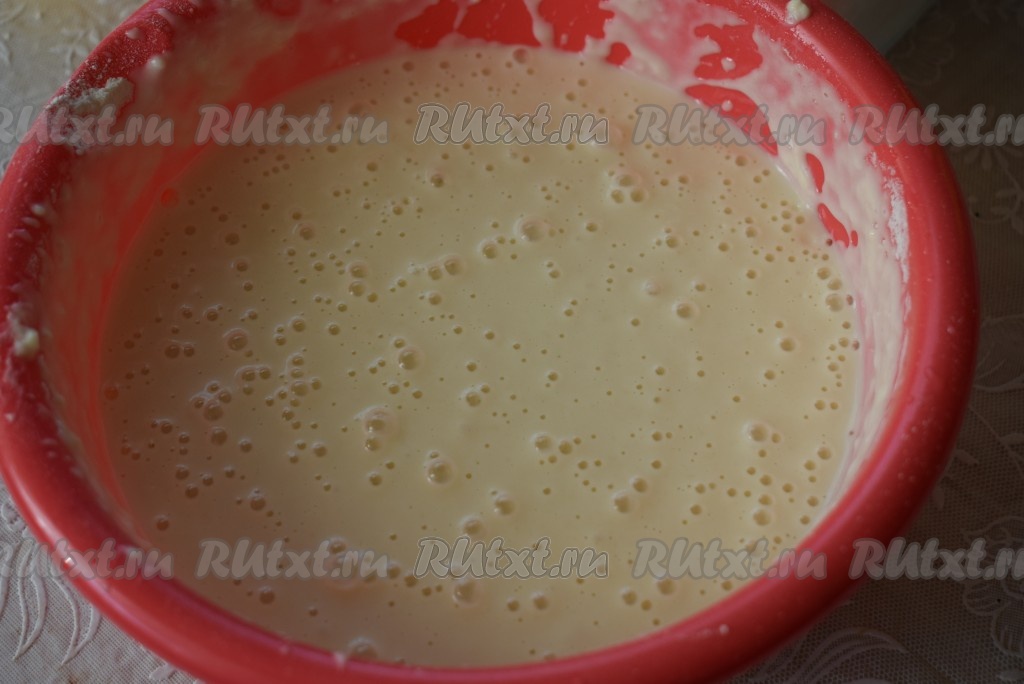 Добавляем муку и при помощи миксера готовим однородное тесто без комочков.