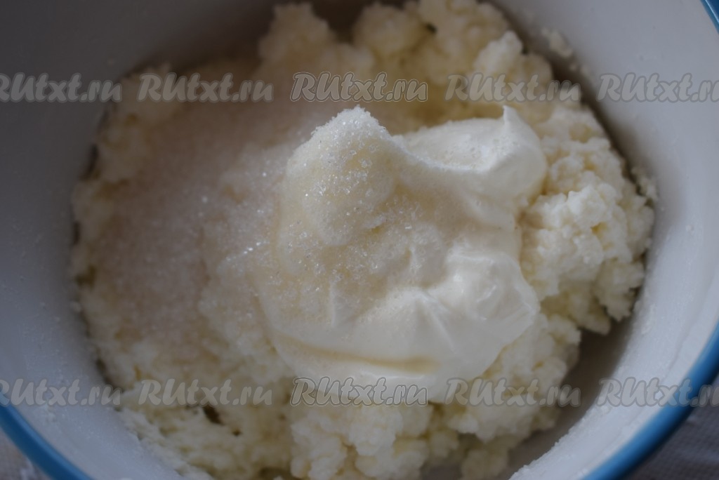 Рикотту кладем в миску, добавляем к ней сметану и сахар, аккуратно перемешиваем до однородности. Начинка готова, к ней можно добавить сухофрукты, нарезанные на кубики, или свежие ягоды.