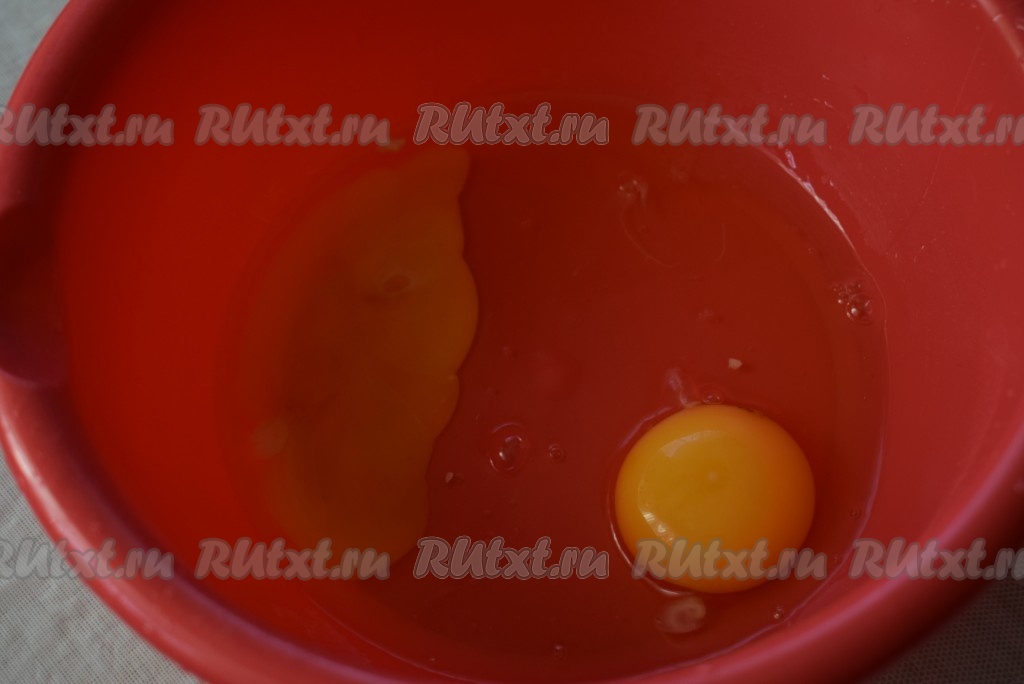 Делаем тесто для блинов, для этого в миску вбиваем яйца.