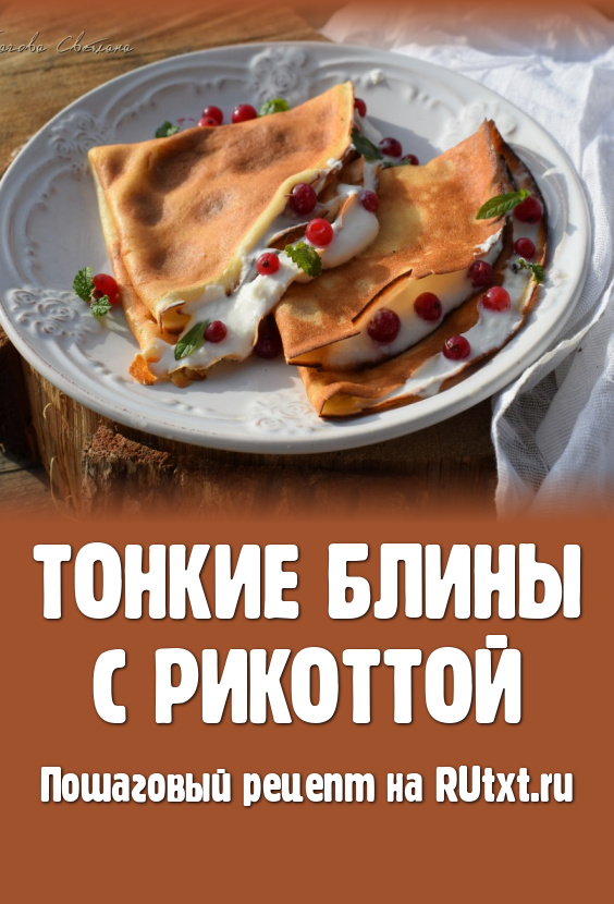 Тоненькие блины с рикоттой - это так вкусно, нежно и так любимо всей нашей семьей. "Пожарь блинчики, мама" - как часто я слышу подобные просьбы от моих детей! У каждой хозяйки в запасе есть несколько любимых рецептов и я - не исключение. Этот рецепт блинов, замешанных на молоке, - один из моих любимых. Блинчики получаются тонкими, мягкими и вкусными, а начинка из рикотты придает сливочный вкус, приятную текстуру и конечно же приносит пользу нашему организму. Традиционно рикотту готовят из козьего или буйволиного молока, поэтому в ней много белка, кальция, витаминов группы B, фосфора, калия и цинка. Так давайте напечем прекрасных блинов с рикоттой и порадуем своих близких!