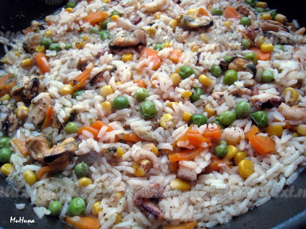 Рис с морепродуктами - это очень вкусное сочетание. Приготовить просто, а подать можно и в простой день, и на праздничный стол.