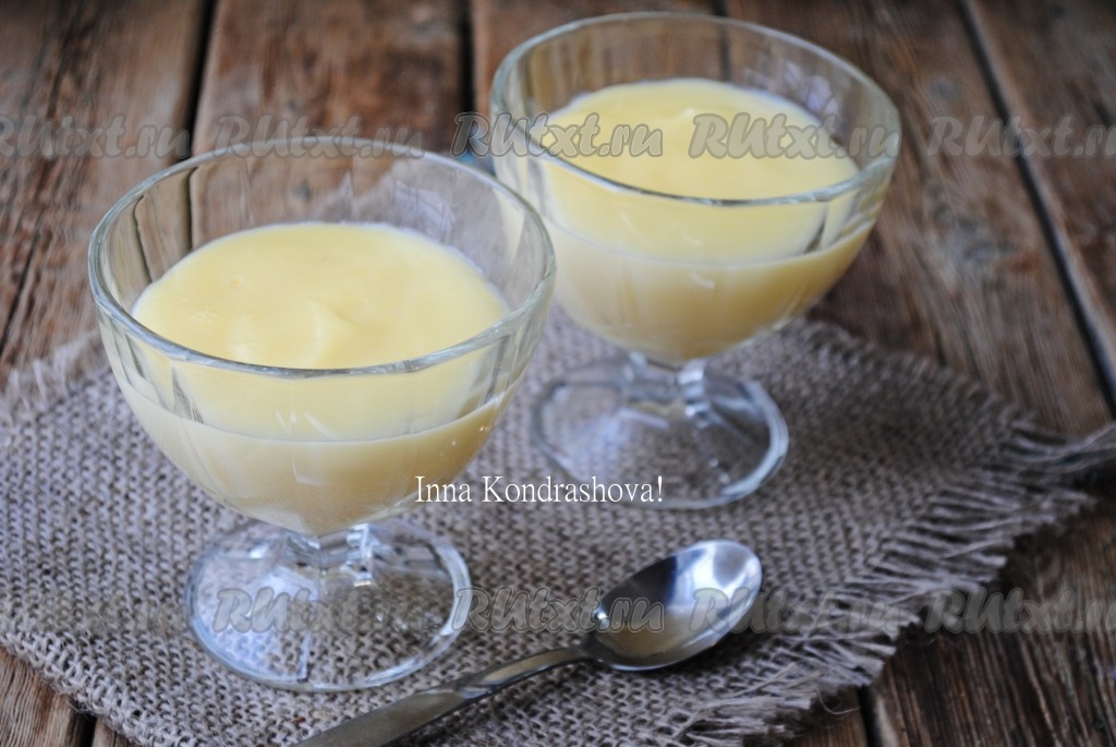 Затем кастрюлю снова отправить на огонь, довести до кипения, уменьшить огонь и проварить 1 минуту, помешивая. По консистенции горячий пудинг напоминает густой заварной крем.