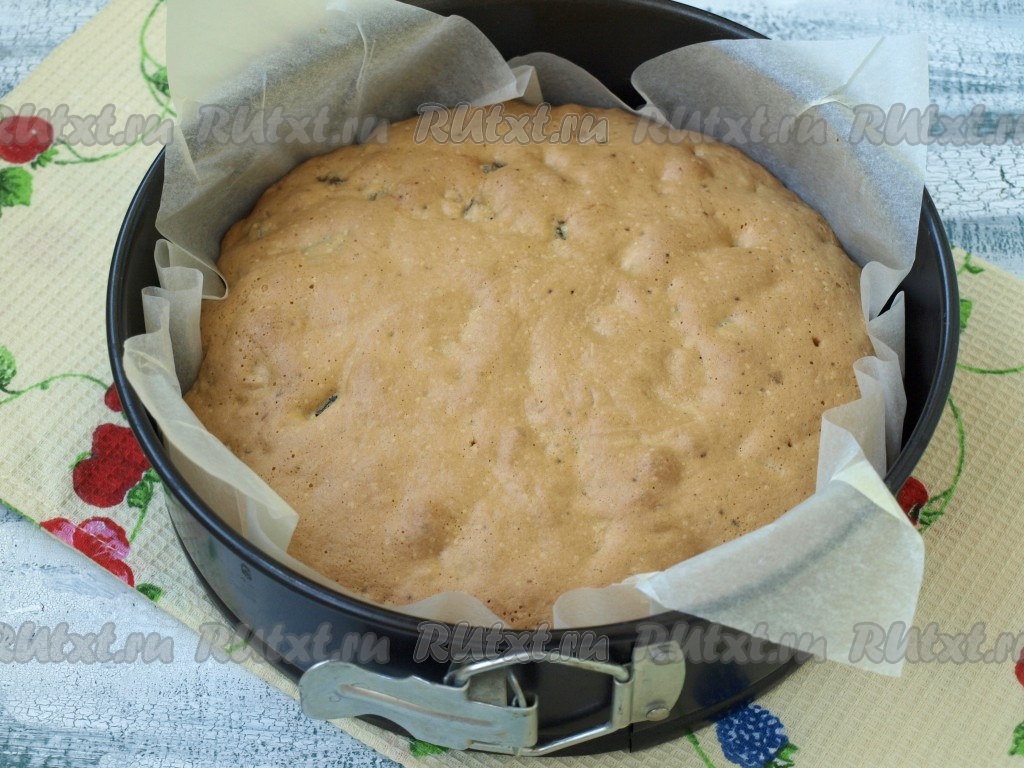 Выпекать пирог с черносливом и грецкими орехами в разогретой духовке при температуре 180 градусов 30-35 минут. Готовность легко проверить при помощи зубочистки (она должна быть сухой при прокалывании готовой выпечки).
