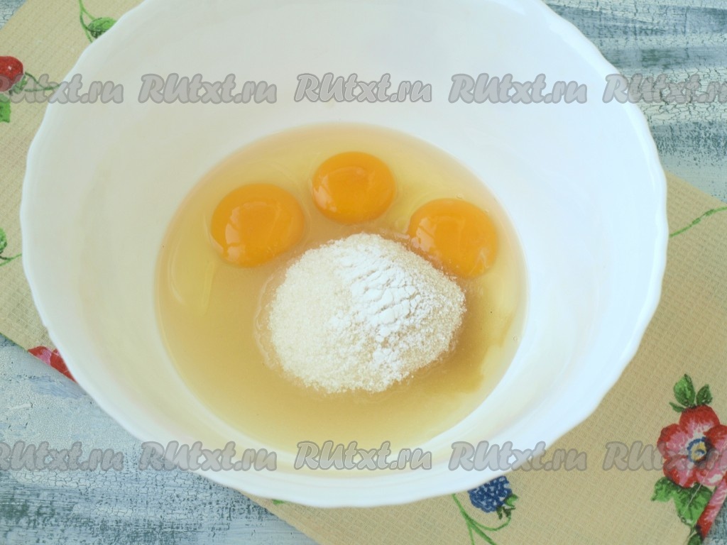 Разбить в миску яйца, добавить ванилин и сахар.