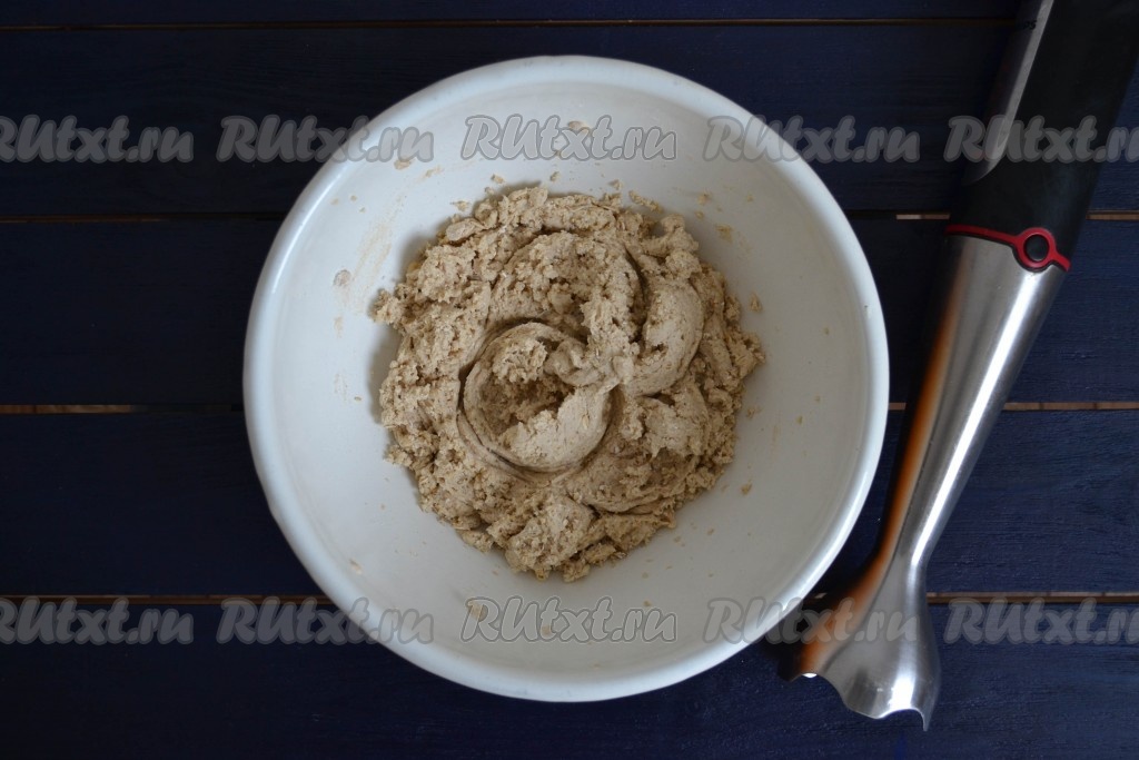 Тесто будет достаточно густым, плотным, немного липнущим. По желанию (но необязательно), перебить массу блендером. Тесто станет более нежным и мягким.