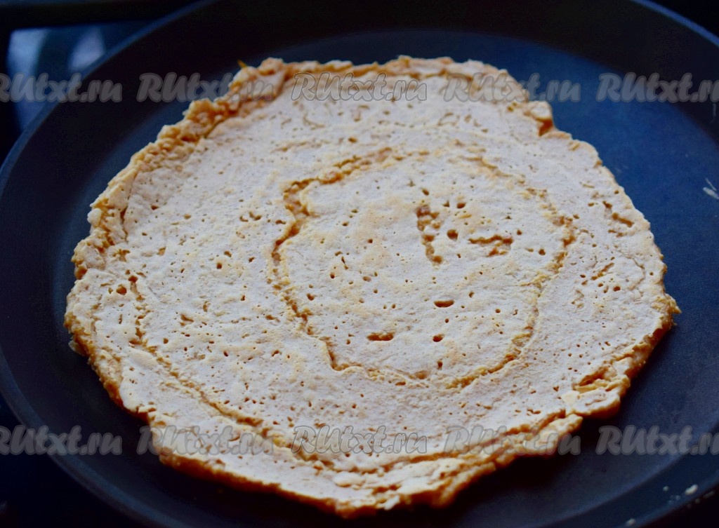 Затем переворачиваем овсяноблинчик, опять накрываем крышкой и жарим до подрумянивания (примерно, минуты 3-4).