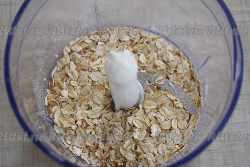 Для того чтобы блинчик получился более однородным, выкладываем хлопья в измельчитель (этот шаг можно пропустить и использовать цельные хлопья).