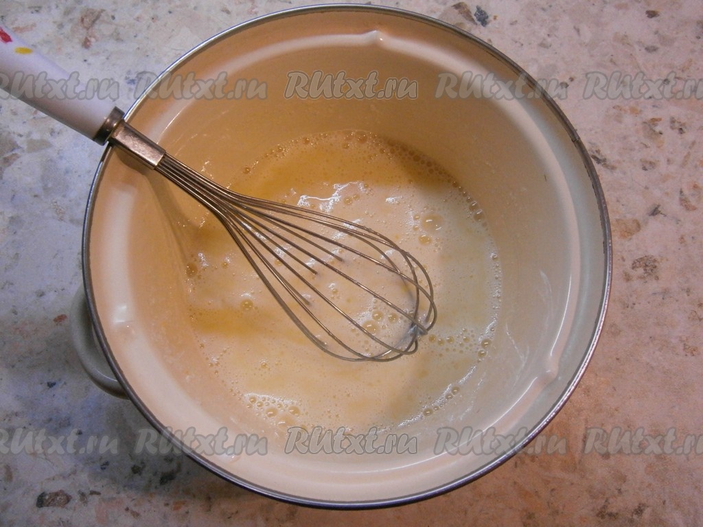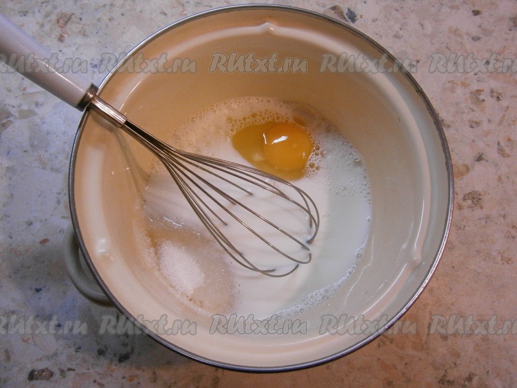 Молоко с яйцом и сахаром хорошенько взбить венчиком или миксером.