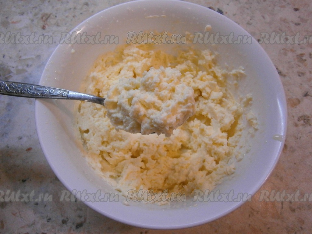 Заварную массу полностью остудить. Размягченное сливочное масло взбить миксером, добавив ванильный сахар, до пышности.