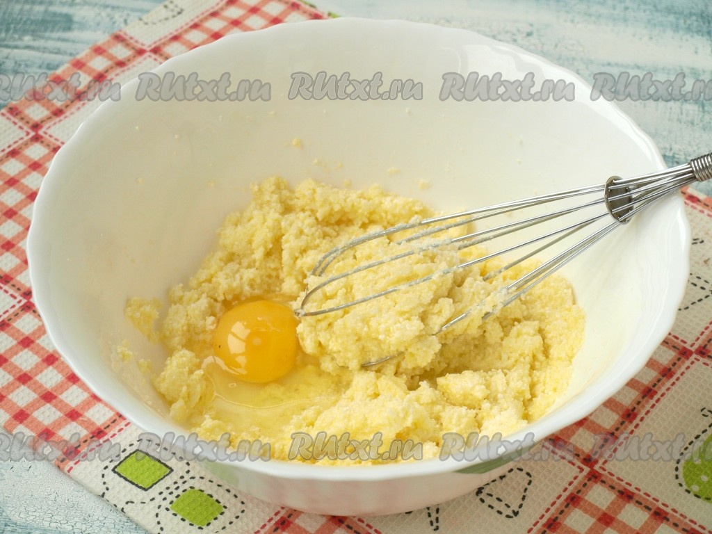 По одному добавить яйца, тщательно размешивая после каждого. Используем в работе ручной венчик.