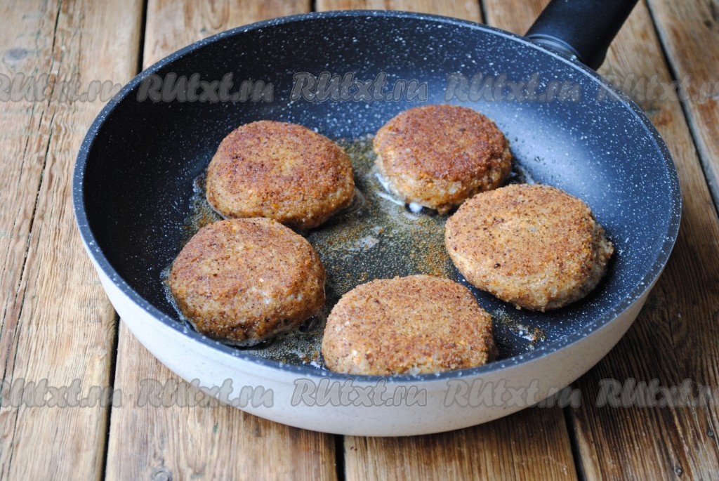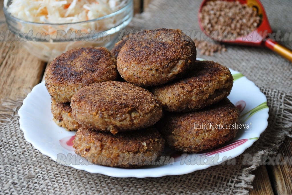 Мокрыми руками сформировать из гречневой массы небольшие котлетки, обвалять их в панировочных сухарях и выложить на сковороду, разогретую с растительным маслом. Масло должно покрывать дно сковороды, но при этом котлеты не должны в нём плавать.