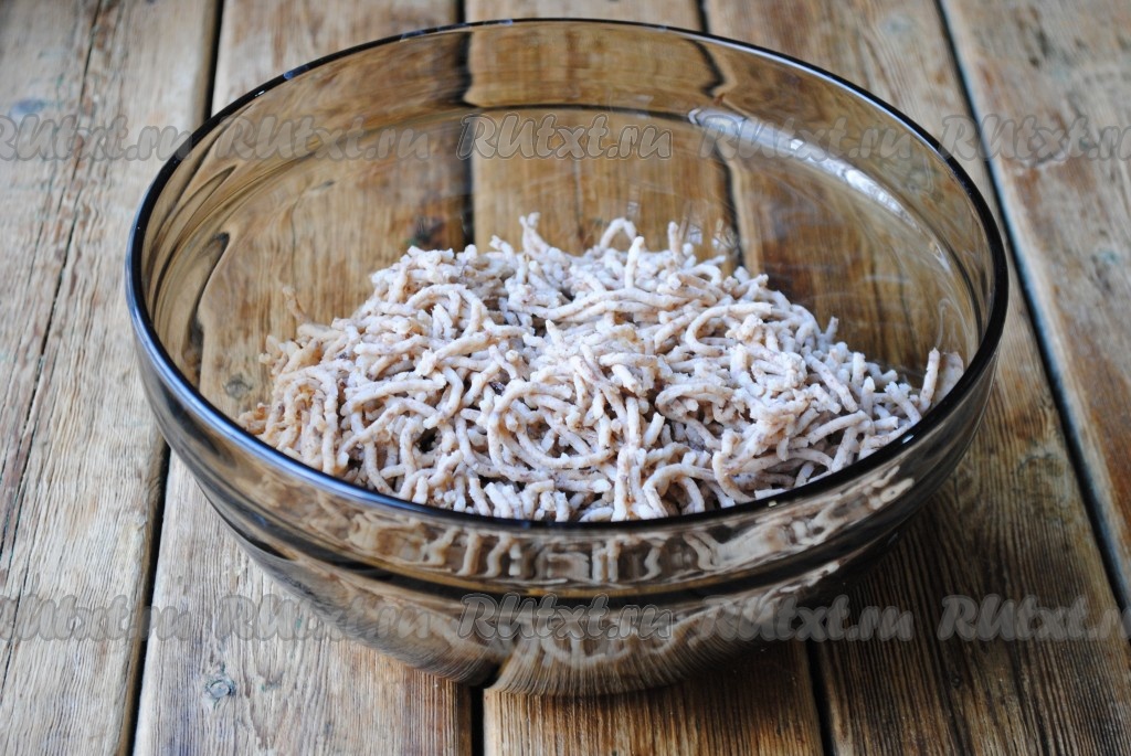 Остывшую гречневую кашу пропустить через мясорубку или измельчить с помощью блендера.