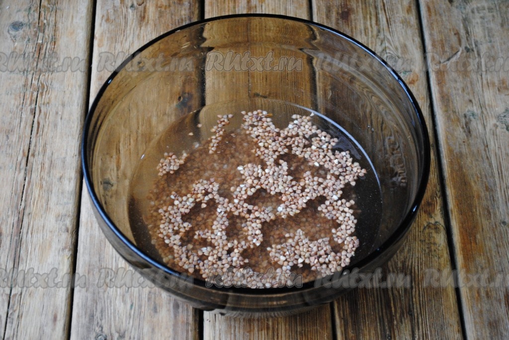 Промыть гречневую крупу в холодной воде несколько раз, воду слить.