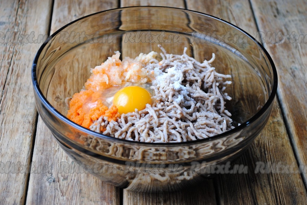 Посолить и поперчить по вкусу перекрученную массу (не пересолите, так как гречку солили во время варки), вбить яйцо.