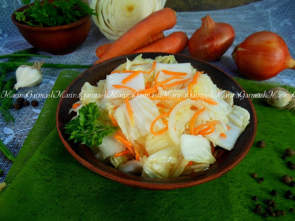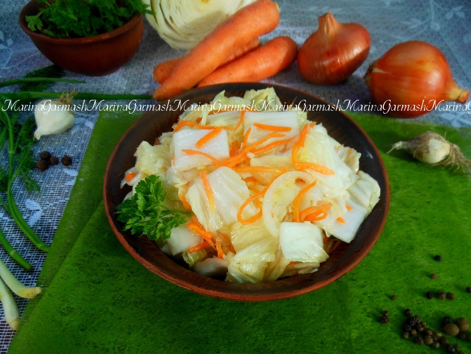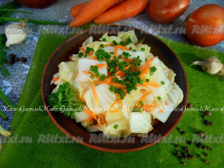 Сегодня хочу поделиться простым рецептом приготовления маринованной пекинской капусты. В тот момент когда уже самые простые салаты приелись, меня всегда выручает этот рецепт. Капуста получается слегка хрустящей и очень вкусной, благодаря отлично подобранным пропорциям маринада. Рекомендую и вам попробовать!