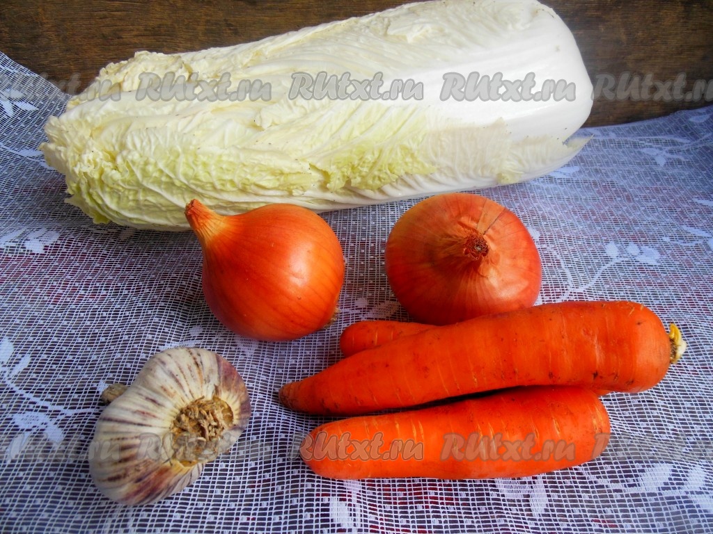 Для приготовления маринованной пекинской капусты я использовала вот такие ингредиенты.