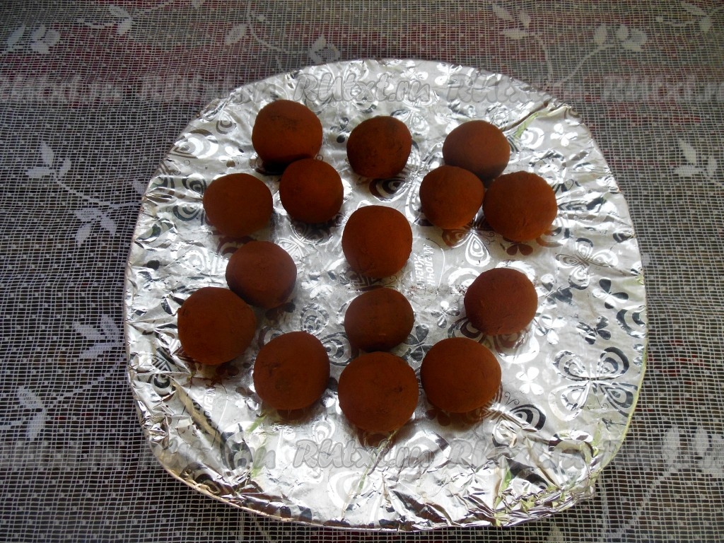 После того как конфетки проведут небольшое количество времени в холодильнике, масса станет более густой.