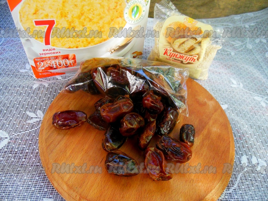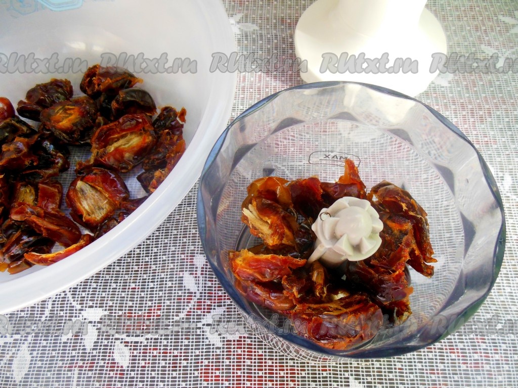 Для приготовления конфет многие замачивают финики в воде. Я использую вариант без замачивания. Перед измельчением сухофруктов удалите из них косточки.