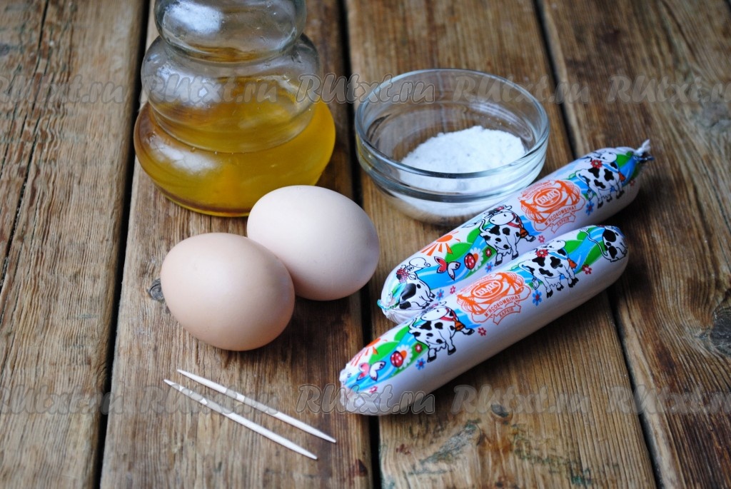 Сосиски, очищенные от плёнки, по центру разрезать вдоль, не доходя, примерно, 1,5 сантиметра до края (как на фото).