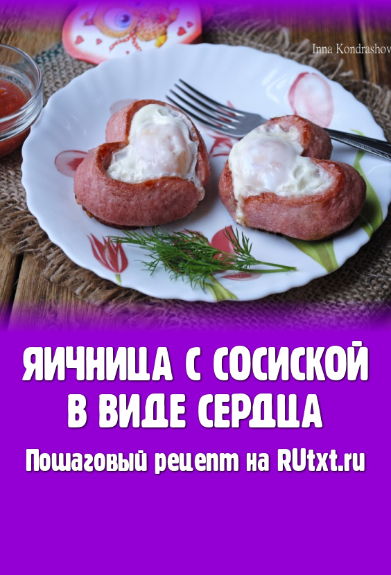 Сегодня хочу поделиться рецептом вкусного и красивого завтрака. Если Вы хотите удивить своих родных и любимых людей, приготовьте яичницу с сосиской в виде сердца. Успех блюду гарантирован! Подавать такую яичницу лучше всего в горячем виде, сразу после приготовления.