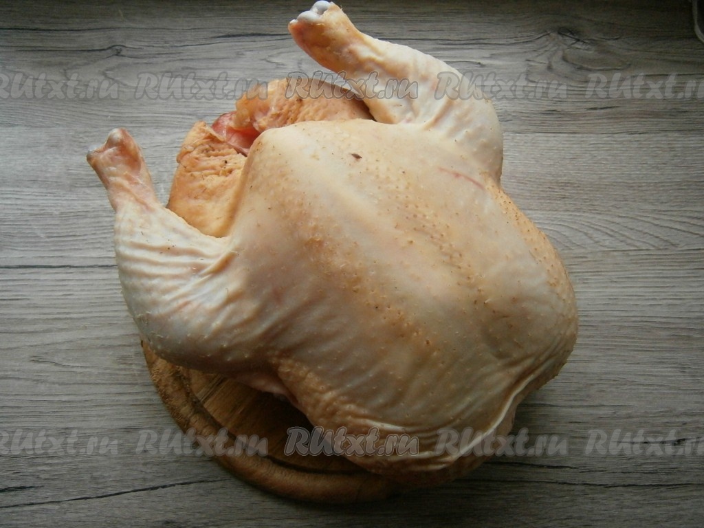 Подготовить курицу - вымыть ее и обсушить.