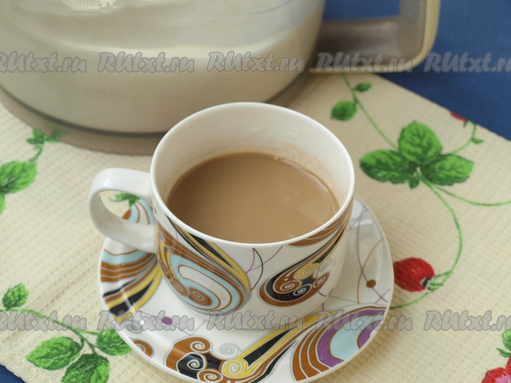 Следующее, что нужно сделать, - это приготовить кофе. Насыпать кофе в чашку и налить немного кипятка, буквально чуть-чуть, чтобы кофе растворился. Затем добавить в чашку молоко. Этим напитком мы будем пропитывать блинчики.