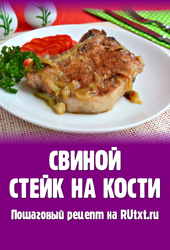 Свиной стейк на кости, запеченный в в духовке, получается сочным и очень вкусным, подаём к столу в горячем виде.