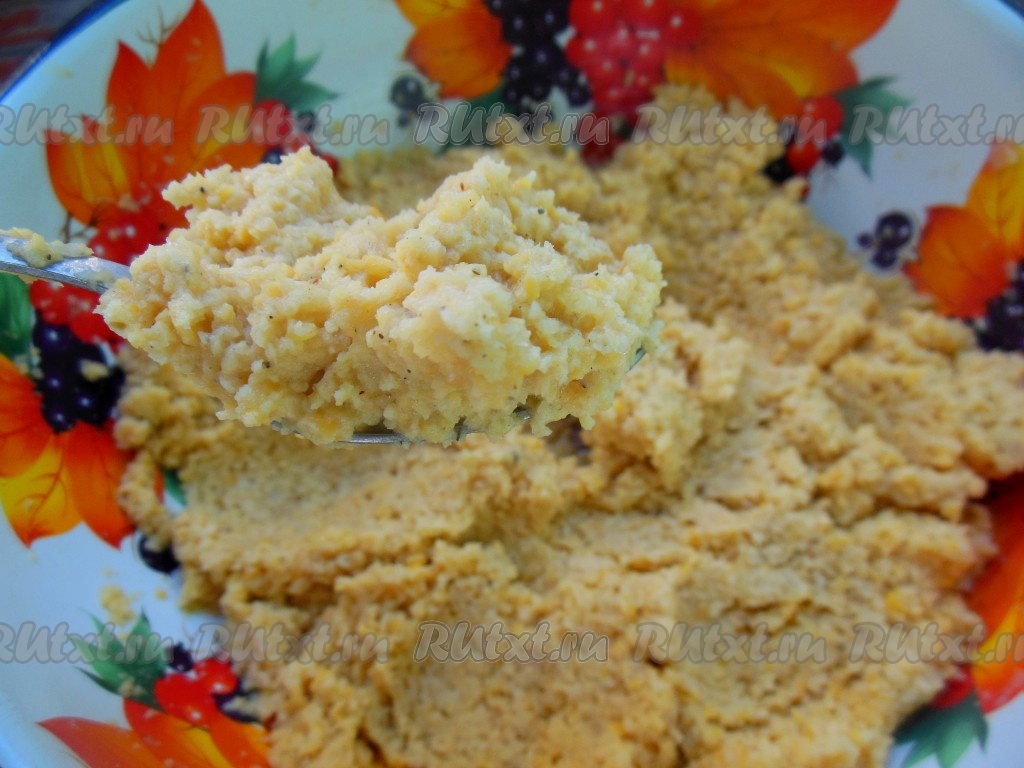 По истечении времени пересыпьте горох на дуршлаг и промойте, дайте стечь воде. Очистите репчатый лук и вместе с горохом пропустите массу через мясорубку два раза или взбейте при помощи блендера.