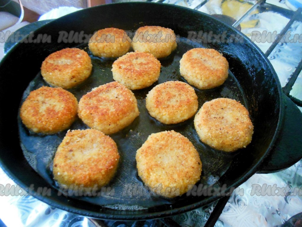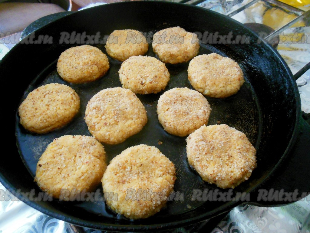 Хорошо разогрейте сковороды с растительным маслом. Обжарьте котлеты на медленном огне до румяной золотистой корочки с каждой стороны (примерно, 2-3 минуты с каждой стороны).