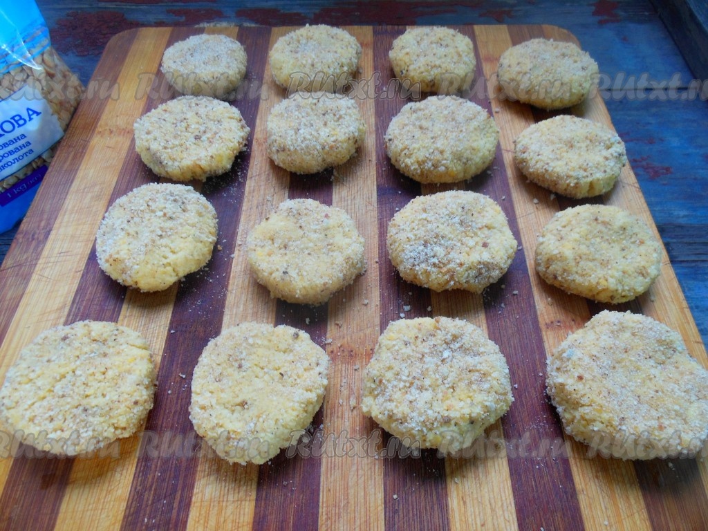 Сформируйте все котлетки из фарша, по желанию, обваляйте их в сухарях.