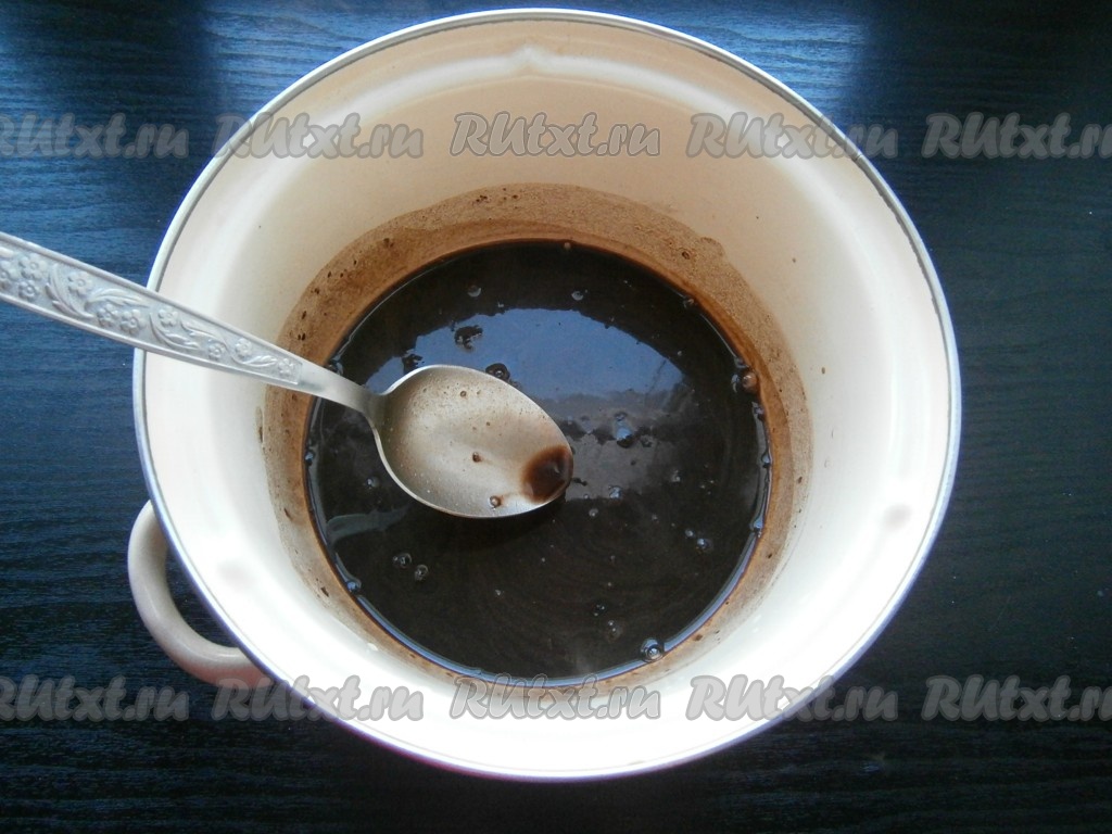 Дать маслу расплавиться, варить глазурь еще минуты 2-3, чтобы она немного загустела. Глазурь по консистенции станет похожей на жидкий кисель или крем.