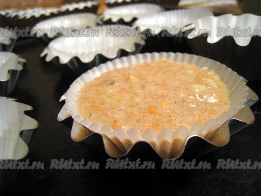 Разложить тесто по формочкам: силиконовым, бумажным или смазанным металлическим.