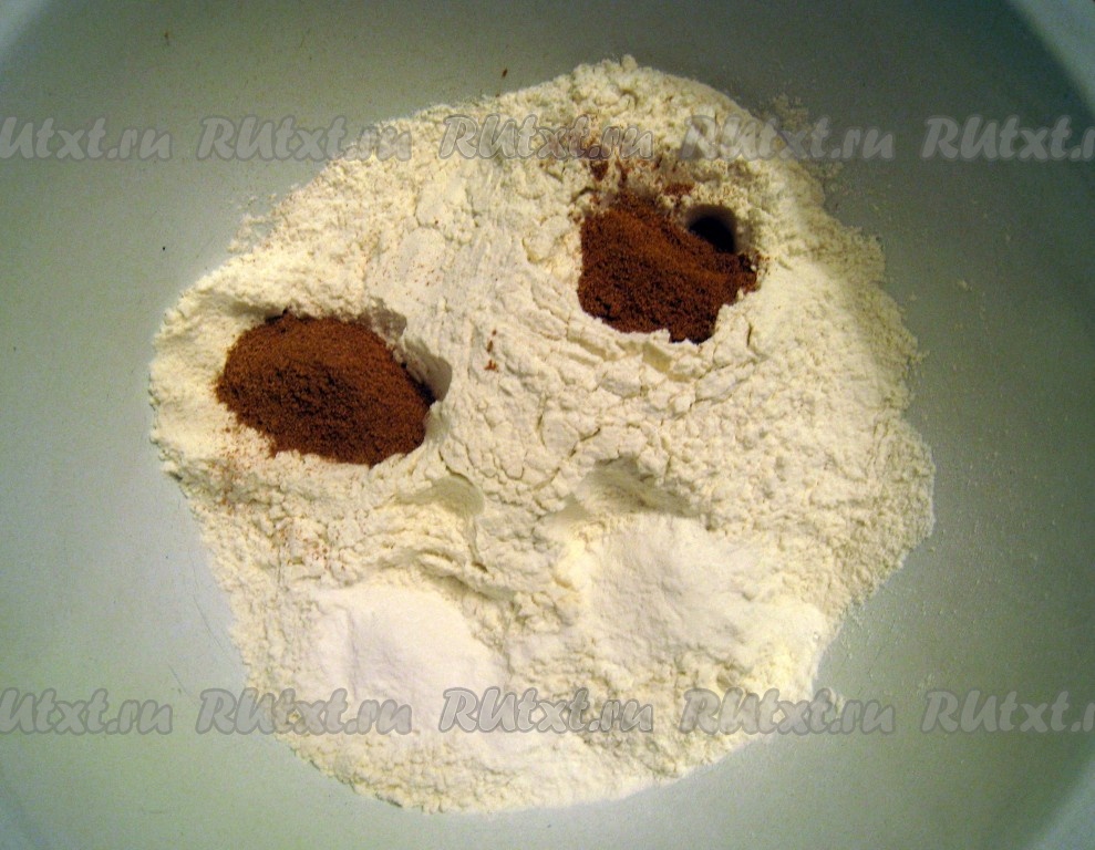 Соединить муку, соль, разрыхлитель и молотую корицу.