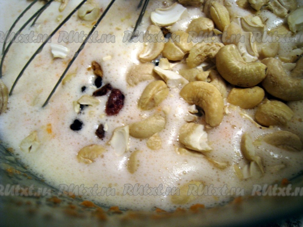 Полученную массу соединить со смесью из муки, корицы, разрыхлителя, соли и быстро перемешать.