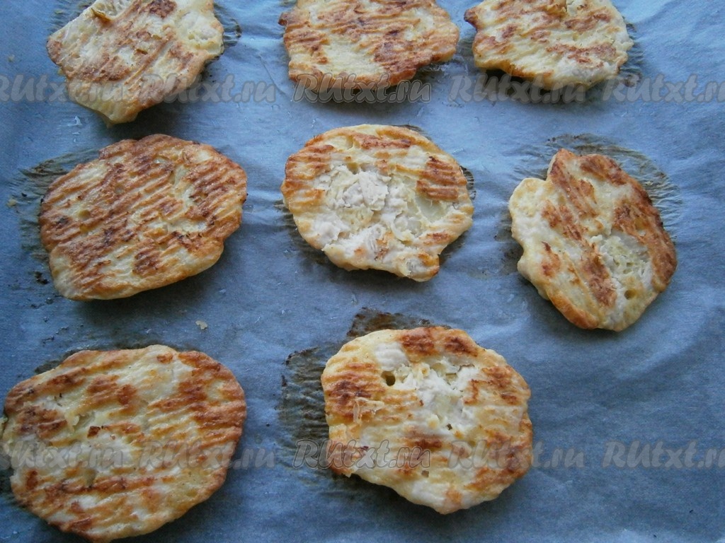 Вкусные, почти диетические котлеты из рубленного куриного филе, приготовленные в духовке, подать к столу в горячем виде.